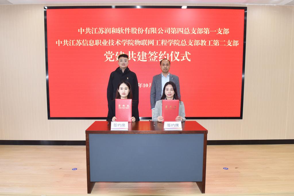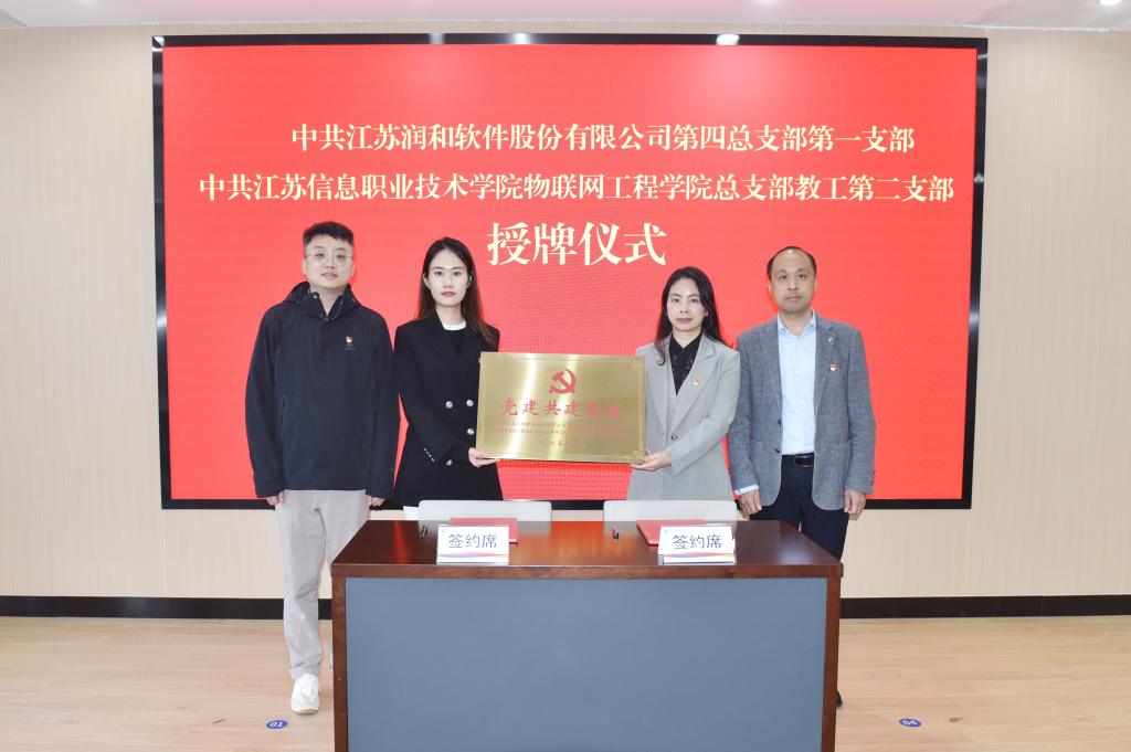 会上,润和软件第四党总支第一党支部书记任焱雯与我校物联网工程学院党总支第二支部书记高云代表双方签署党建共建协议,并为“党建共建基地”授牌,夯实组织联建、人才联育的合作基础。