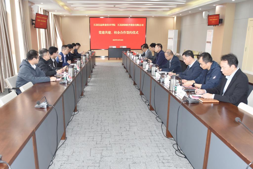 10月24日,我校与江苏润和软件股份有限公司(以下简称:润和软件)校企合作签约仪式在我校召开。润和软件高级副总裁骆敏清、首席运营官孙旭东等企业代表,我校党委书记左同宇、副校长徐振邦出席会议。会议由副校长徐振邦主持。