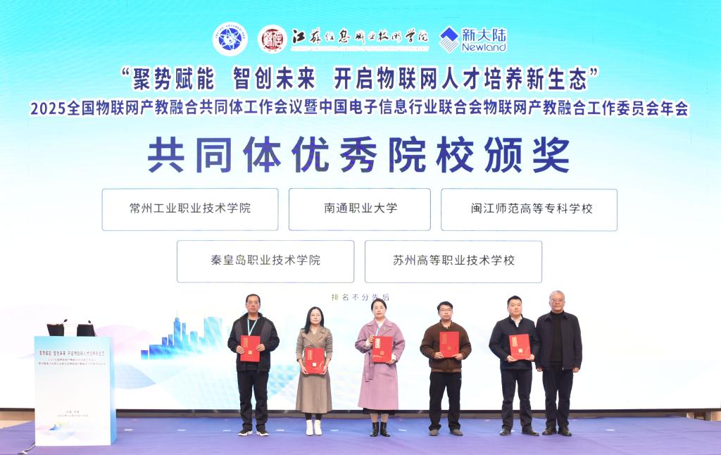 12月5日,2025全国物联网产教融合共同体工作会议暨中国电子信息行业联合会物联网产教融合工作委员会年会在我校成功举办。中国电子信息行业联合会副会长徐金声、高校毕业生就业协会教育数字化服务工作委员会秘书长孙文升、无锡市工业和信息化局副局长秦晓华、工信行指委电子信息分委会副秘书长兼新一代信息技术产业研究院院长李颋、常州工业职业技术学院党委书记席海涛,我校党委书记左同宇、校长张瑜等领导出席会议。会议由副校长徐振邦主持。