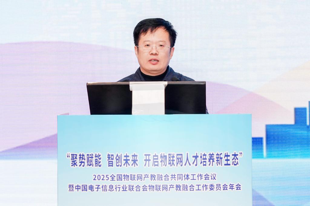 会上,党委书记左同宇代表学校向来自全国物联网行业、企业和高校的与会嘉宾表示热烈欢迎,并对各级领导长期以来给予学校发展的关心与支持致以衷心感谢。左同宇书记表示,学校坚持以“一体两翼”为载体,遵循“国家急需、产教融合、供需适配”原则,持续将专业建设与区域产业结构紧密对接,不断加强微电子技术、物联网等特色优势专业建设,积极深化产教融合共同体与产教联盟建设。学校通过多元办学构建产教融合新形态,推动教育扎根区域、融入产业,持续提升人才培养与地方经济发展的“紧密度”、与行业需求的“适配度”,为发展新质生产力提供有力的人才支撑和技能保障。