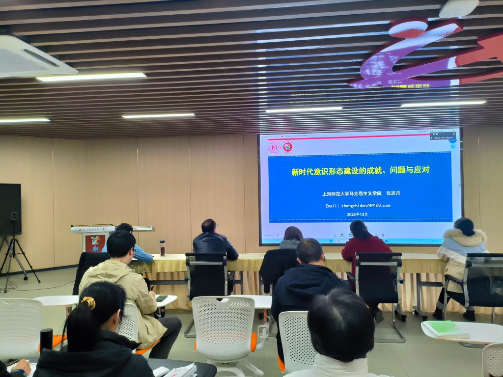 2025年12月3日下午,必威图书馆七楼意识形态馆研讨室内气氛热烈,一场高水平的学术讲座以线上线下融合的形式顺利开展。马克思主义学院特邀上海师范大学马克思主义学院院长张志丹教授,通过线上连线方式,为我校教师带来题为“新征程意识形态建设的成就、问题与应对”的专题学术报告。马克思主义学院全体教师及微电子学院部分教师齐聚现场,讲座由马克思主义学院党总支书记高鹏主持,院长刘海滨出席。 ...