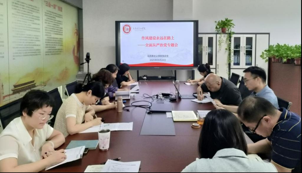 2025 年 9 月 24 日上午,马克思主义学院召开 “作风建设永远在路上—全面从严治党专题会”。会上,与会人员共同学习了习近平总书记在2025年7月-8月对全面从严治党作出的重要指示,明确要以永远在路上的坚韧推进全面从严治党,健全作风建设常态化长效化机制。学院总支纪检委员陈艳艳同志和总支书记高鹏同志先后发言。陈艳艳同志指出,要坚持严字当头,一体推进 “三不腐”,巩固中央八项规定精神学习教育成果,紧盯关键领域,健...